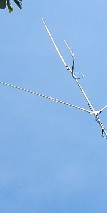 Mijn eerste antenne was een draadantenne van slechts twintig meter lengte. op 6 meter hoog, Later stapte ik over op een inverted-V-antenne, wat een grote verbetering was.